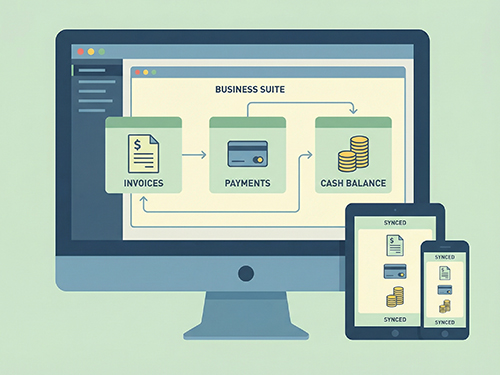 Instead of switching between banks, spreadsheets, and apps, businesses can: