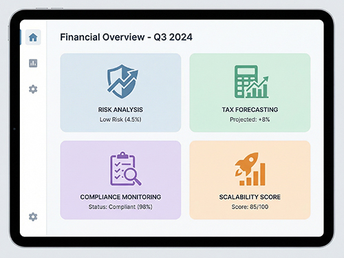 Tools simulate tax outcomes for different structures over 3–5 years.
